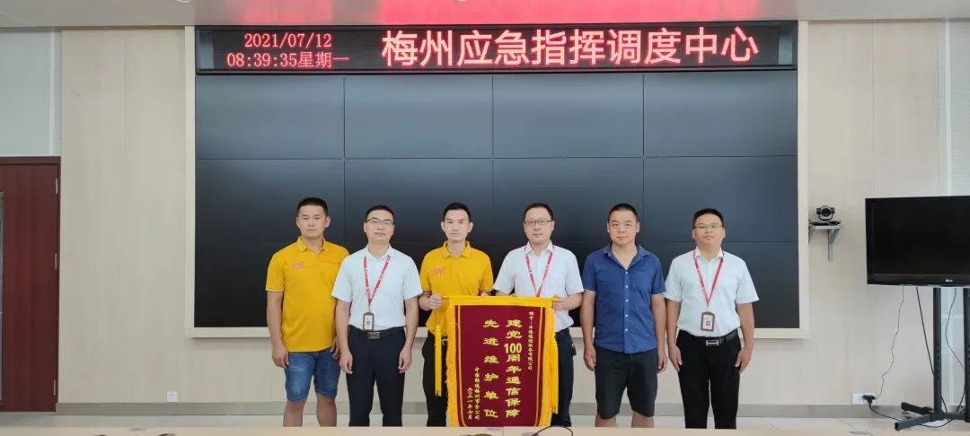 活动当天,各传输枢纽值守、干线盯防、仪表、车辆、应急物资全部到位,除落实安全人员24小时值班机制外,公司还部署实施了态势感知、应急响应、持续安全评估、安全监测巡检等措施,实现重保期间网络安全零事故。为此,米兰·milan-通服被中国联通梅州市分公司授予“建党100周年通信保障先进维护单位”的荣誉锦旗。
